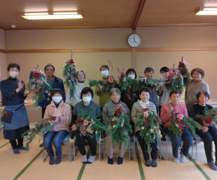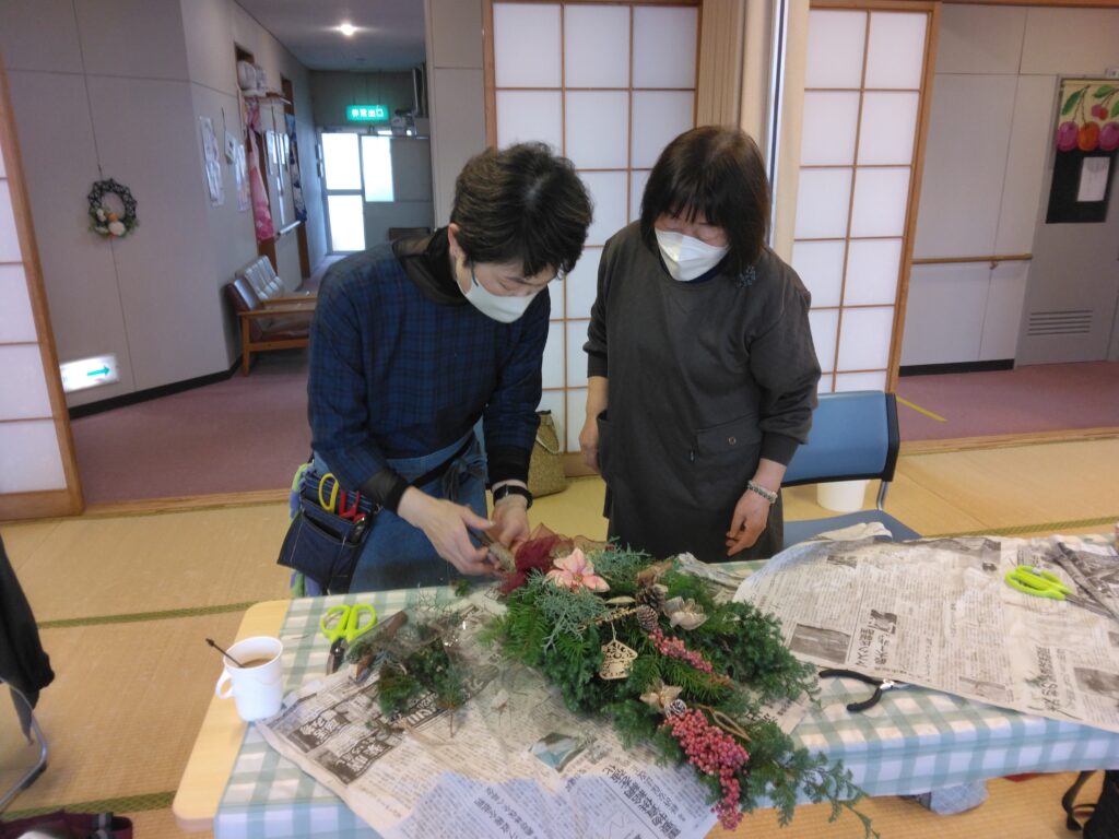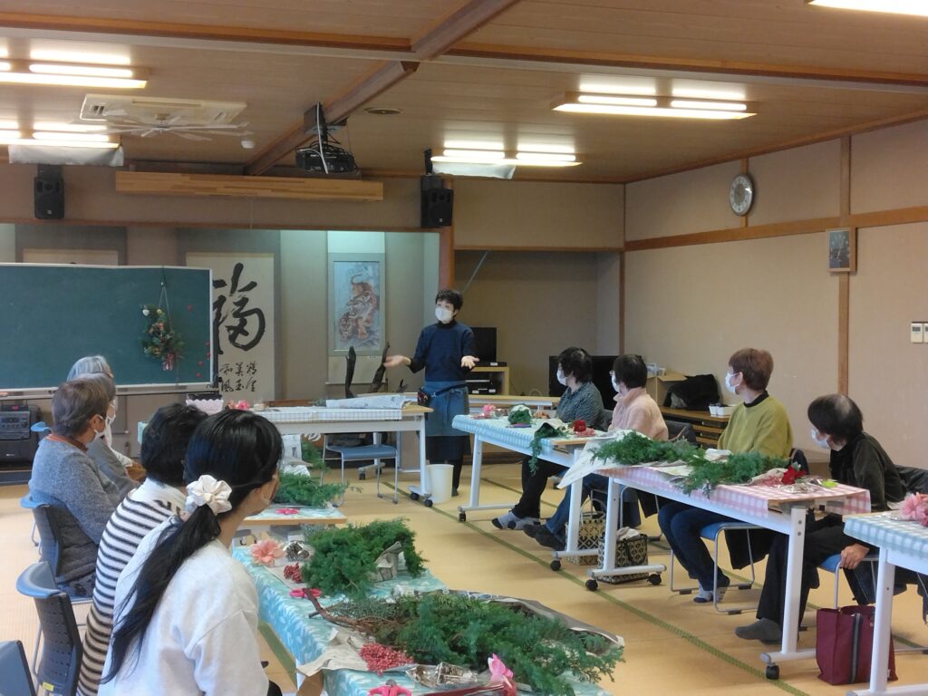 12月3日(水曜日)、13名の方々にご参加をいただき、山形市の生花店「花省」さんの、鈴木温子先生をお迎えして、クリスマス飾り作りを開催しました。