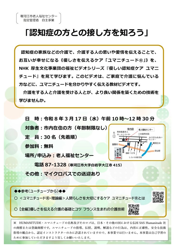 3月老人福祉センター企画事業【認知症の方との接し方を知ろう】