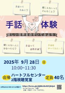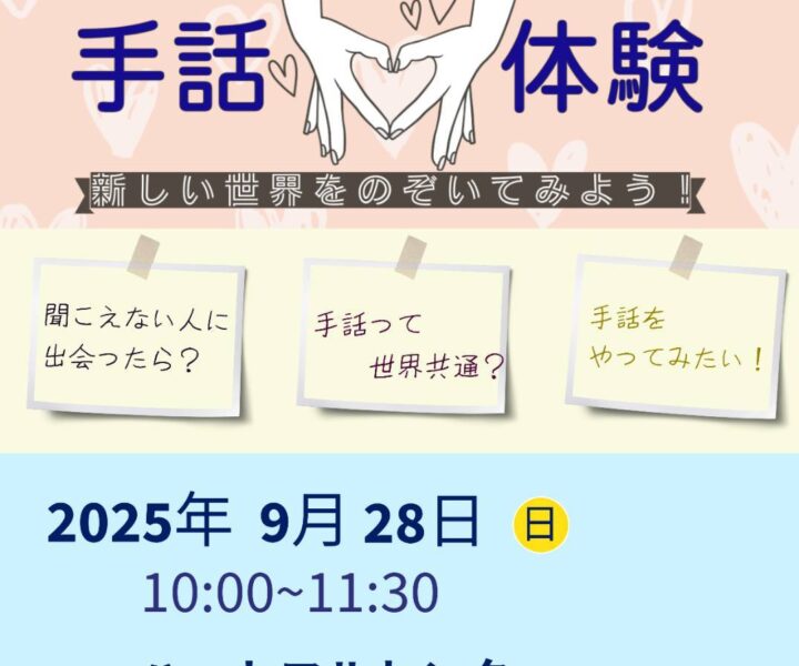• 内容:ろう者とのコミュニケーションの疑問や簡単な手話を体験