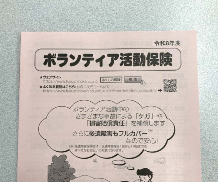 ボランティア活動中に「自分がケガをした」「他人にケガをさせてしまった」「物を壊してしまった」など、もしもの事故に備える保険です。活動時には忘れずに加入しましょう。