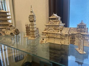 再び自宅に戻ると、リビングで小説を読む。好きな作家をきいたところ、ジャンルは特に決まっていないそうで、今は池井戸潤の作品を読んでいると教えてくれた。1時間ほど経つと、今度はプラモデルを組み立てる。奥様によると、最初はそれほど難易度が高くないものだったが、長く続けているうちに徐々に大作になっていったそう。リビングのキャビネットに船や飛行船など大小さまざま飾られている。