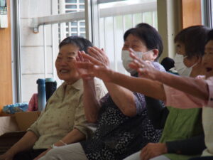 「この歌詞のようにすっだら、ボケないんだど〜」と職員が声を張れば、笑いが返る。