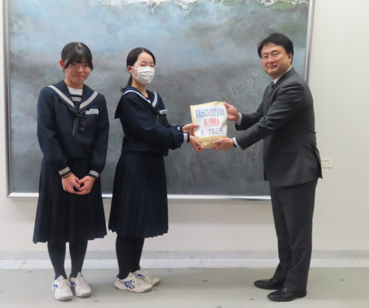 寒河江市立陵東中学校より、赤い羽根共同募金にご協力いただきました。 中心となり募金活動をしてくださったボランティア委員会の生徒さんが来所してくれました。 お預かりした募金は、地域の福祉活動やボランティア活動の支援に役立てられます。 皆様の温かいご支援、ご協力を心よりお願い申しあげます。