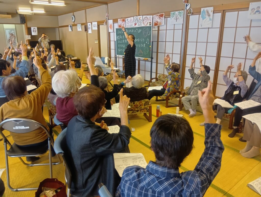 老人福祉センター事業のうたごえ喫茶に参加しました。たくさん歌を歌ったり、手話をしたり、とても楽しく参加させて頂きました。