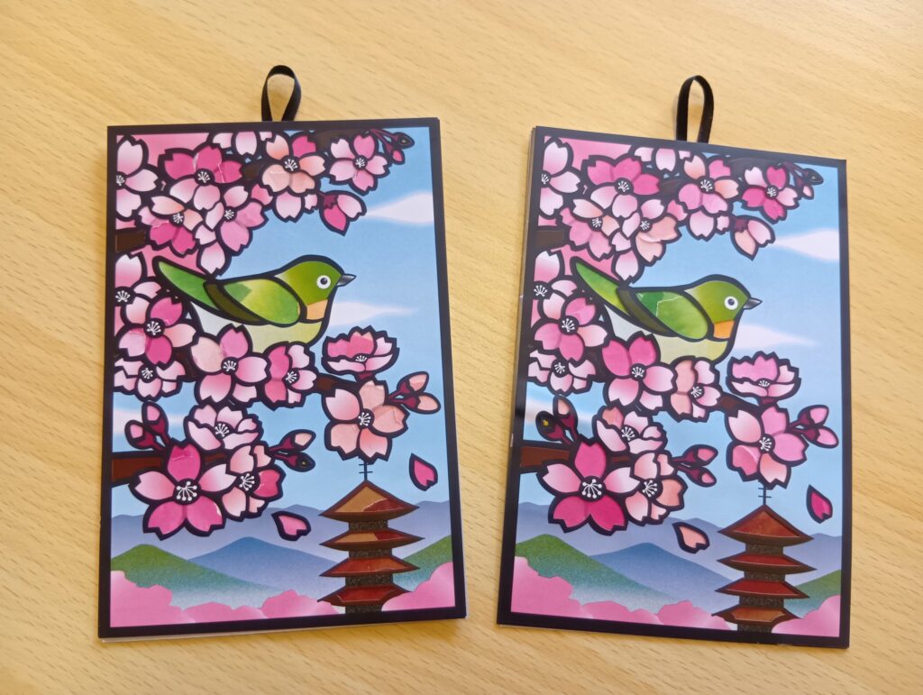 好評だったシールちぎり絵をしました。春らしい作品が完成しました。